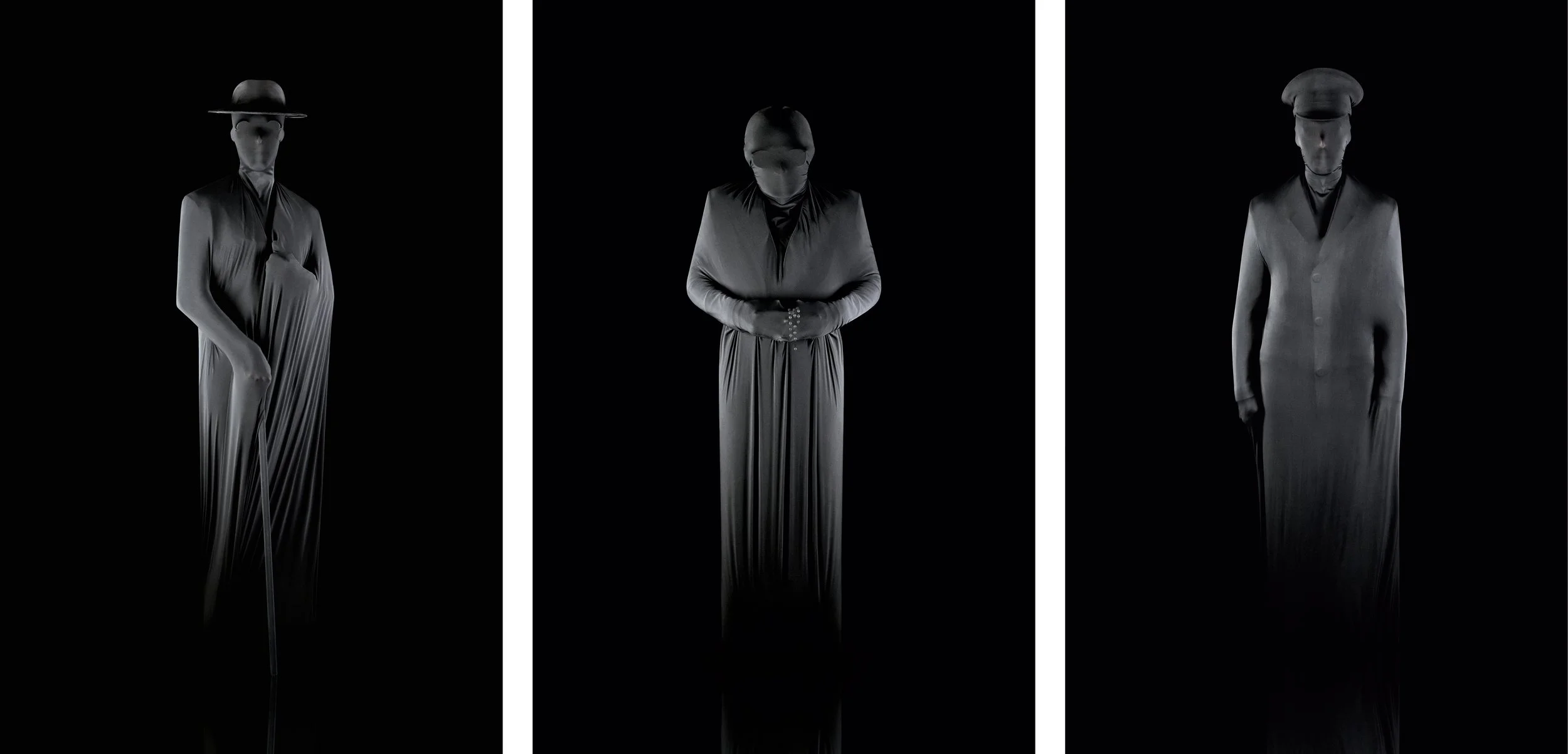 In the accurate counter-positioning of this 'placental' performing quality, actors carefully adhere to the structure of gestures and poses. The result is a magnification of their plastic filigree, of their bone texture. What is lost is the humoral circulation of bodies - the complexion, the alphabet of look, the physiognomic evidence evaporate: the human traits are like turned into insects, portrayed in the hollow shells of their simulacra, the fetishes of themselves. The performers not only get inside the personality of their characters, they even slip under their skin, actually giving life to humanoid tapestries, where fabric and skin can no longer be told apart. These characters are captured in the moment when they are excluded from the living flesh of the world, almost as if they, too, wore the thickened patinas of indifference or suspicion, the lazy seed-coat of our looks.