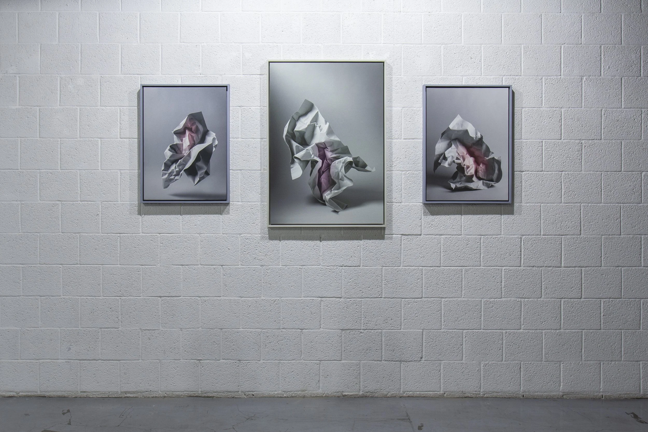 Le opere richiamano una lunga tradizione artistica: il panneggio, centrale fin dall’antichità, diventa protagonista. Le pieghe del foglio sostituiscono il corpo, e la luce ne costruisce la presenza plastica. Le immagini sembrano sospese, levitanti in uno spazio cromatico che può essere grigio, rosa o azzurro, evocando atmosfere pittoriche e rimandi alla storia dell’arte.